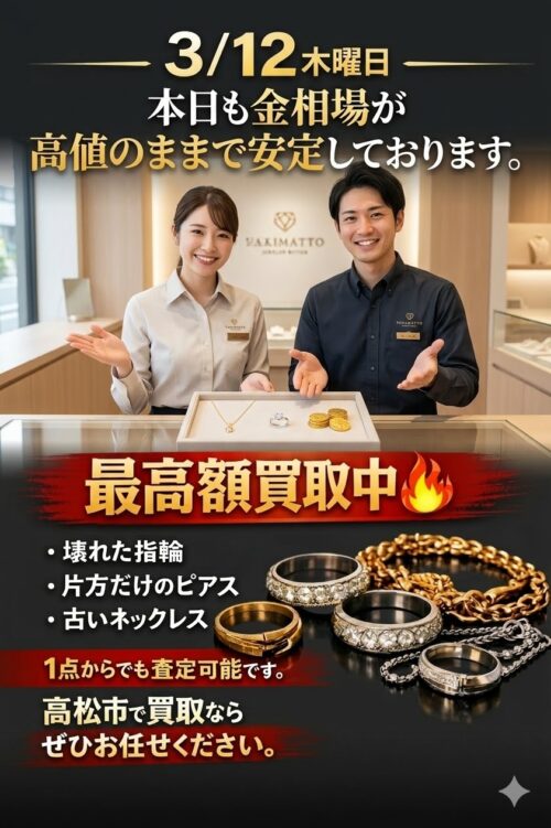 高松市で金・貴金属の高価買取なら、最高額ドットコム高松店へお気軽にご相談ください。