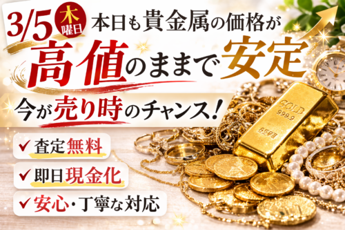 現在、金・プラチナなど貴金属相場が高値のまま安定しています。
