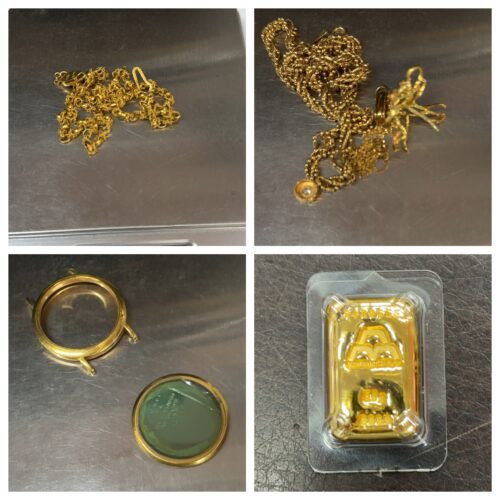 お持ち込みいただいたのはK18のネックレス・リング数点と、純度の高いインゴット。