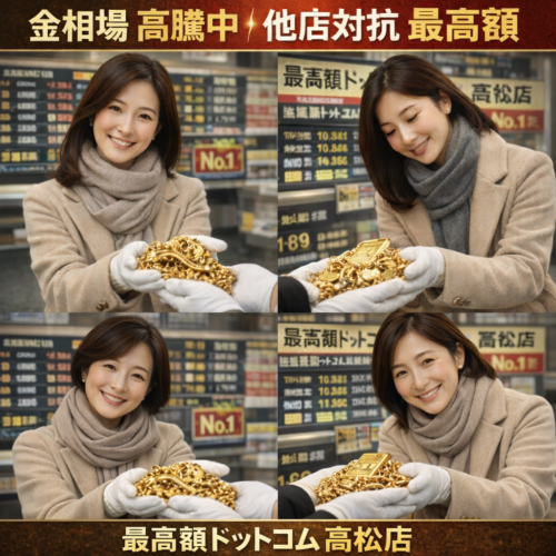 査定は完全無料、1点から大量持ち込みまで柔軟に対応可能です。高松市で貴金属・金・ブランドアクセサリーの高価買取をご検討中の方は、地域密着で信頼と実績のある買取専門店、最高額ドットコム高松店へぜひご相談ください。