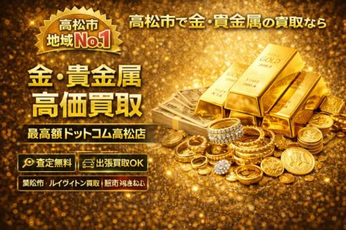 査定は完全無料、1点から大量持ち込みまで柔軟に対応可能です。高松市で貴金属・金・ブランドアクセサリーの高価買取をご検討中の方は、地域密着で信頼と実績のある買取専門店、最高額ドットコム高松店へぜひご相談ください。